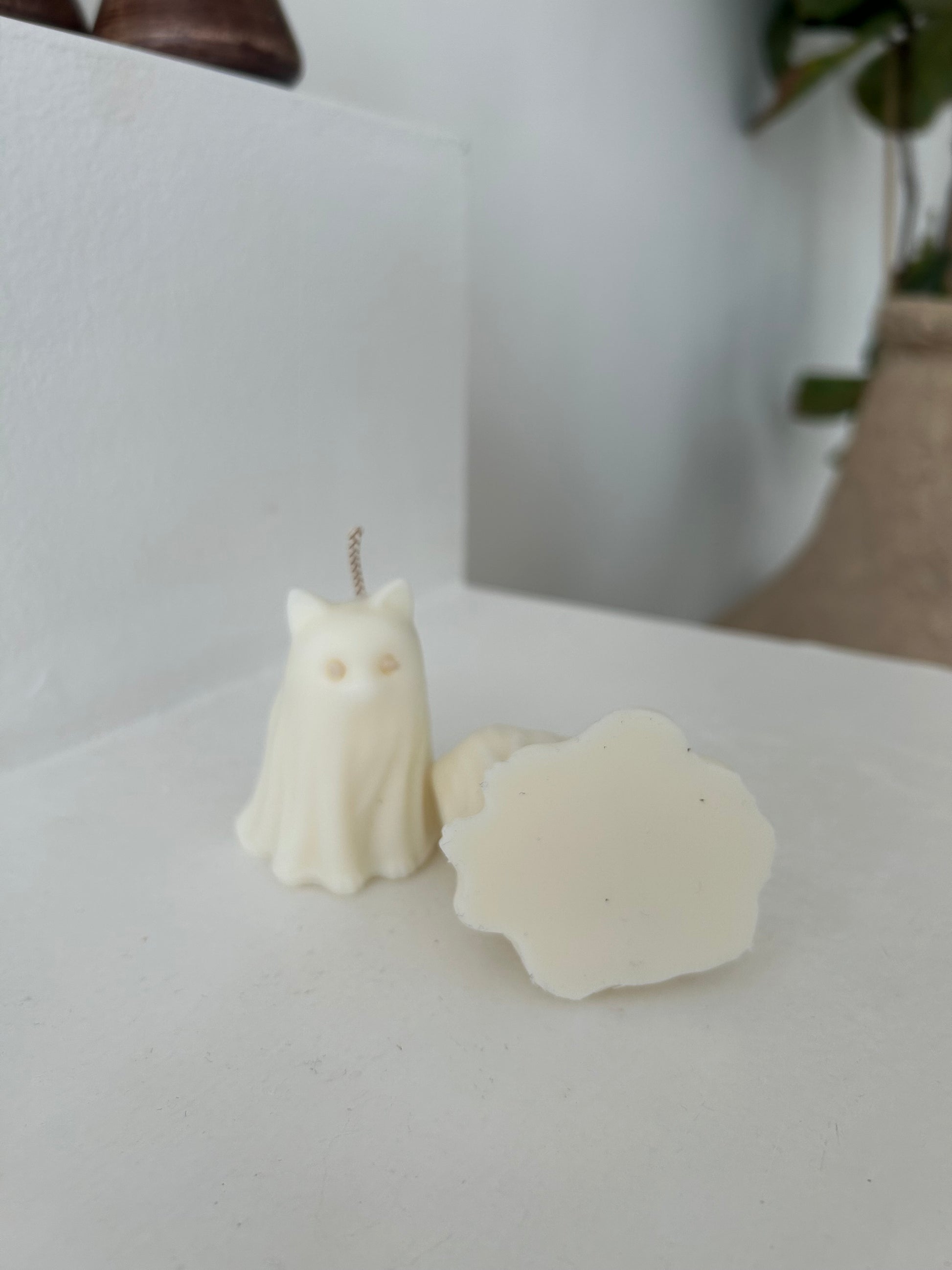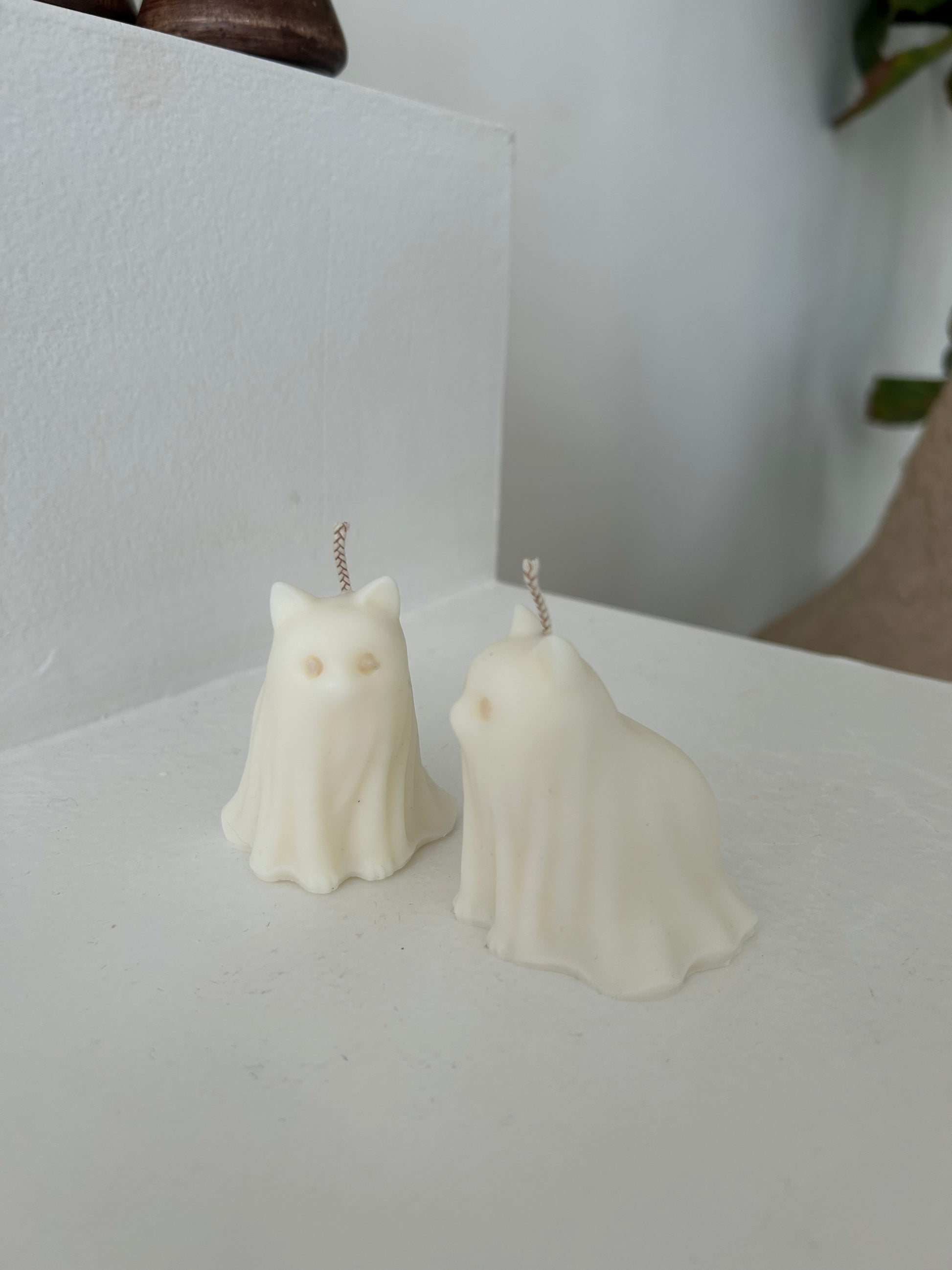 „Geisterkerze“ – Tierische Halloween-Kerze in Hunde- oder Katzenform – Duftfrei & handgegossen