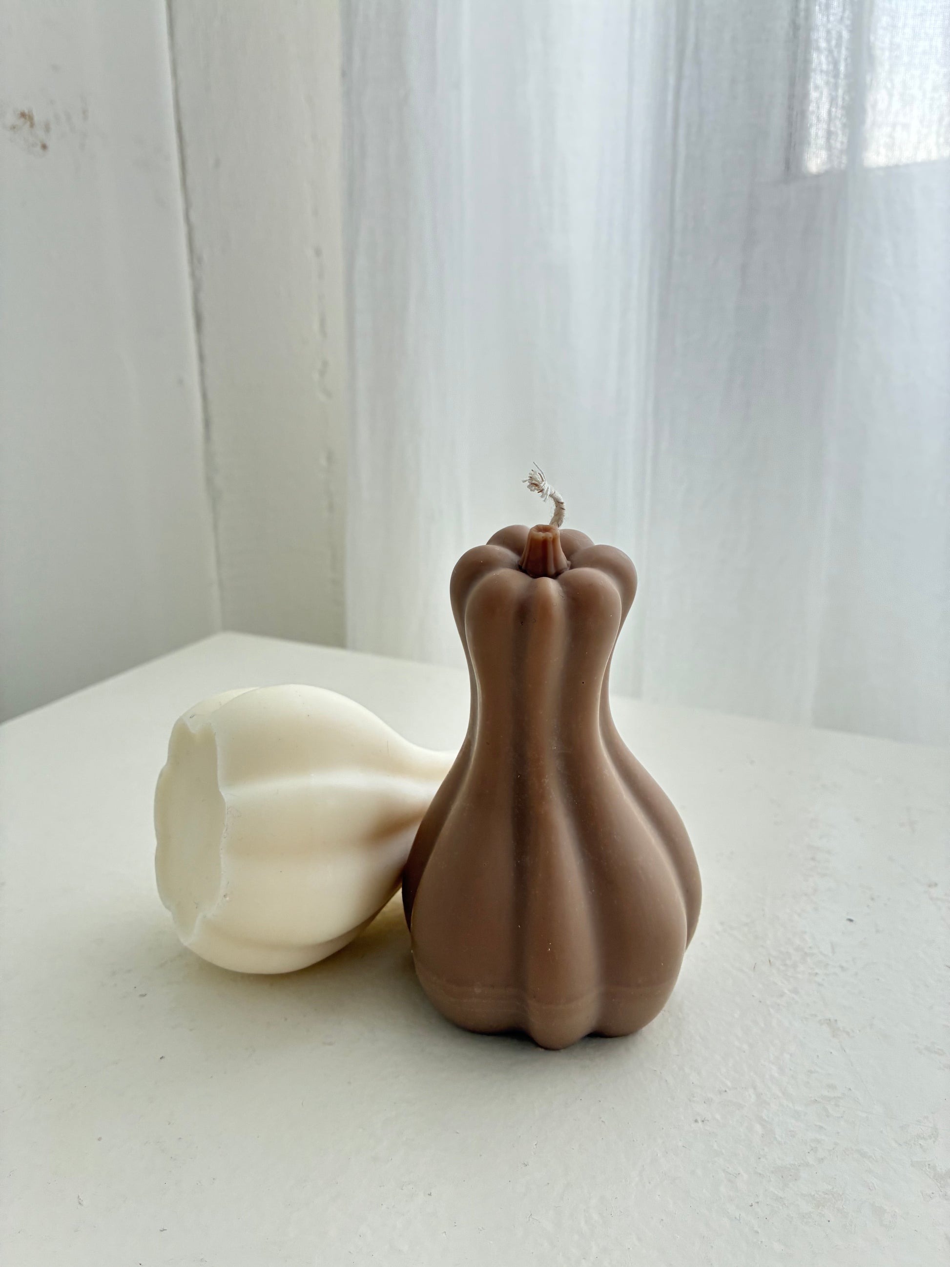 Jede „Kürbis“-Kerze wird liebevoll von Hand gefertigt. Kleine Unterschiede in Form und Oberfläche machen jedes Stück einzigartig – charmant, natürlich und authentisch.