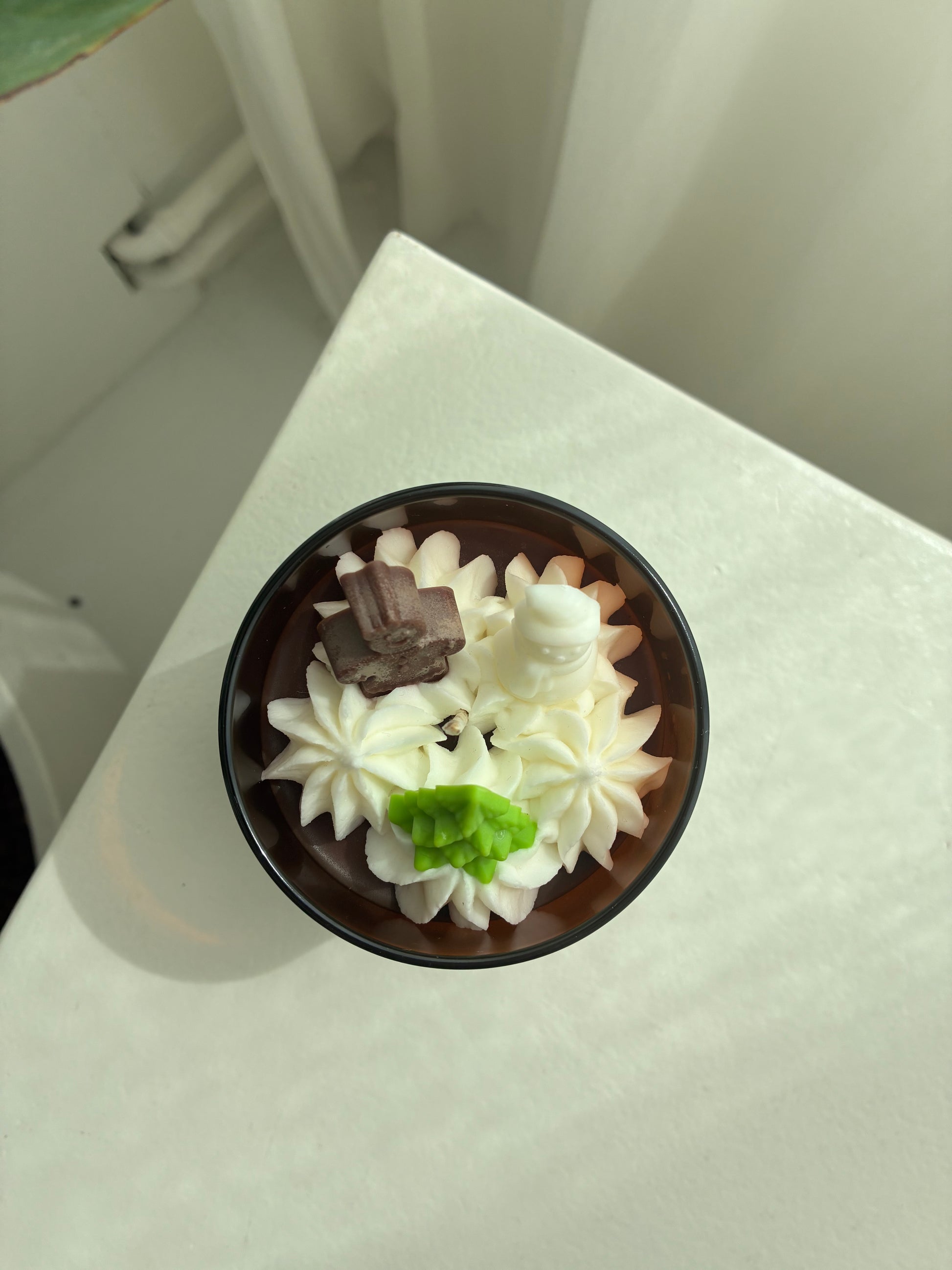 Die „Spiced Biscuit Latte Candle“ fängt den Zauber der Weihnachtszeit ein – mit cremigem Wachs, verziert wie ein festlicher Latte mit Sahnehaube, gekrönt von einem grünen Tannenbäumchen, einem Schokoladen-Lebkuchenmann und einem weißen Schneemann aus Wachs. Jeder Blick auf sie versprüht pure Winterfreude, jeder Duftzug entführt in die warme, würzige Welt frisch gebackener Kekse und heißer Gewürzmilch.