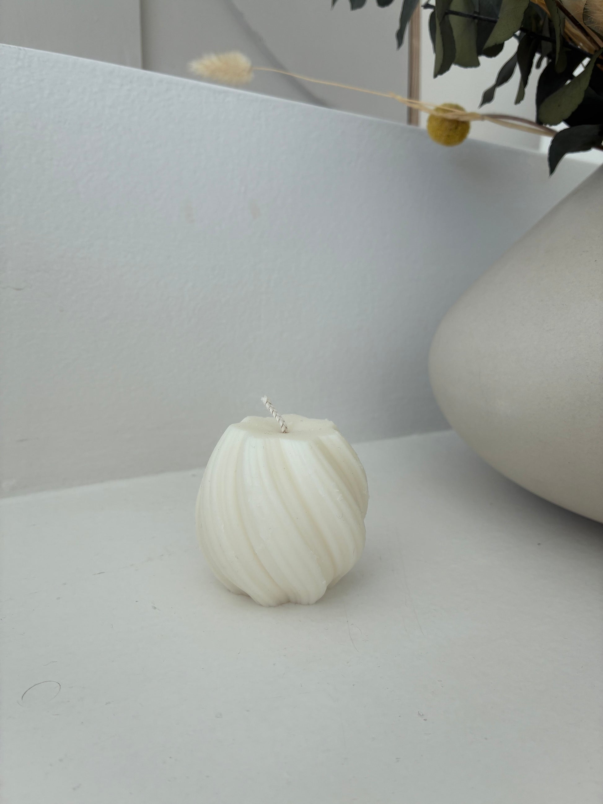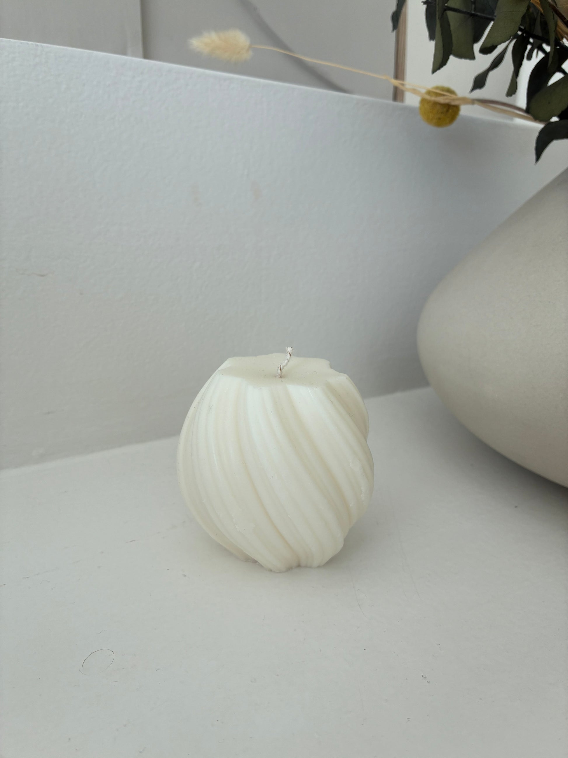 Mit ihrer charakteristischen Spiralform wirkt die Kerze wie ein kleines Kunstobjekt. Sie vereint Minimalismus mit verspielter Dynamik und wird zum dekorativen Hingucker in jedem Raum.